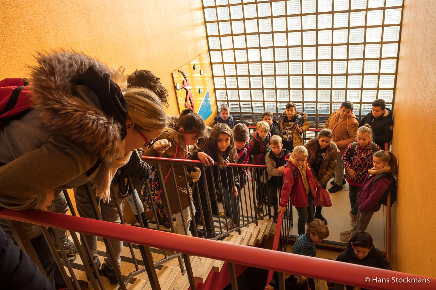 Basisschool De Berk in Paal, 9 uur. We worden vrolijk begroet door de juffen en kinderen van het vierde leerjaar.