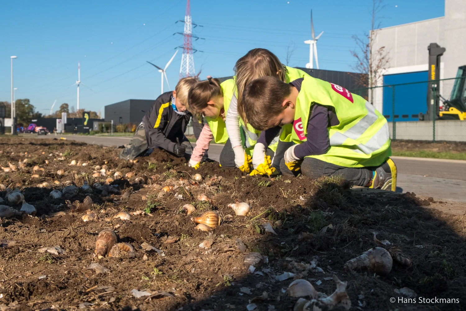 Deze kinderen gaan 30.000 bloembollen planten op het nabijgelegen bedrijventerrein De Weven.